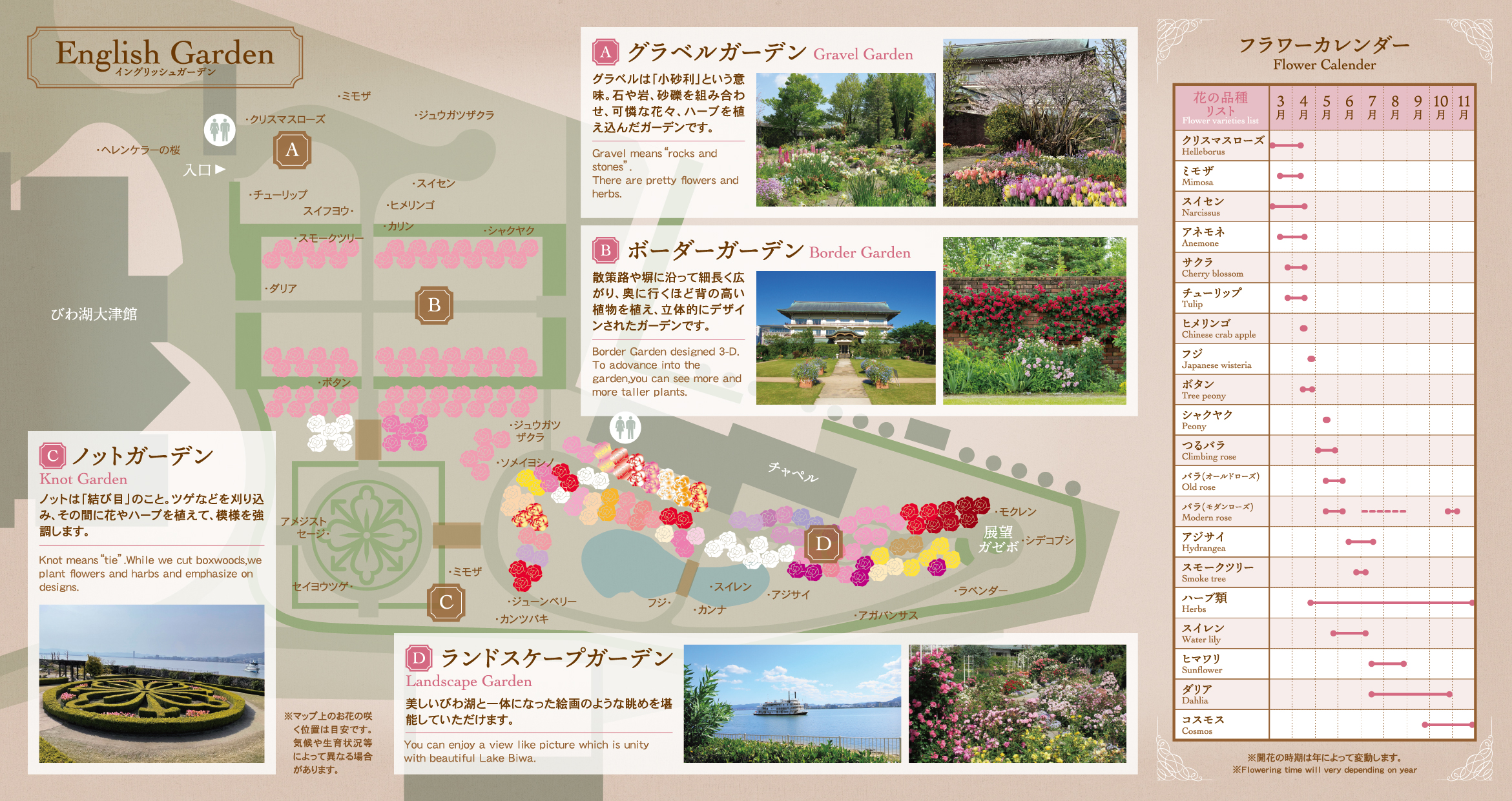 | 美しいびわ湖を借景に絵画のように美しい眺めを堪能して頂けます | ローズソムリエ小山内健監修! ※四季咲きバラにつき、春から初冬までバラを楽しめます |