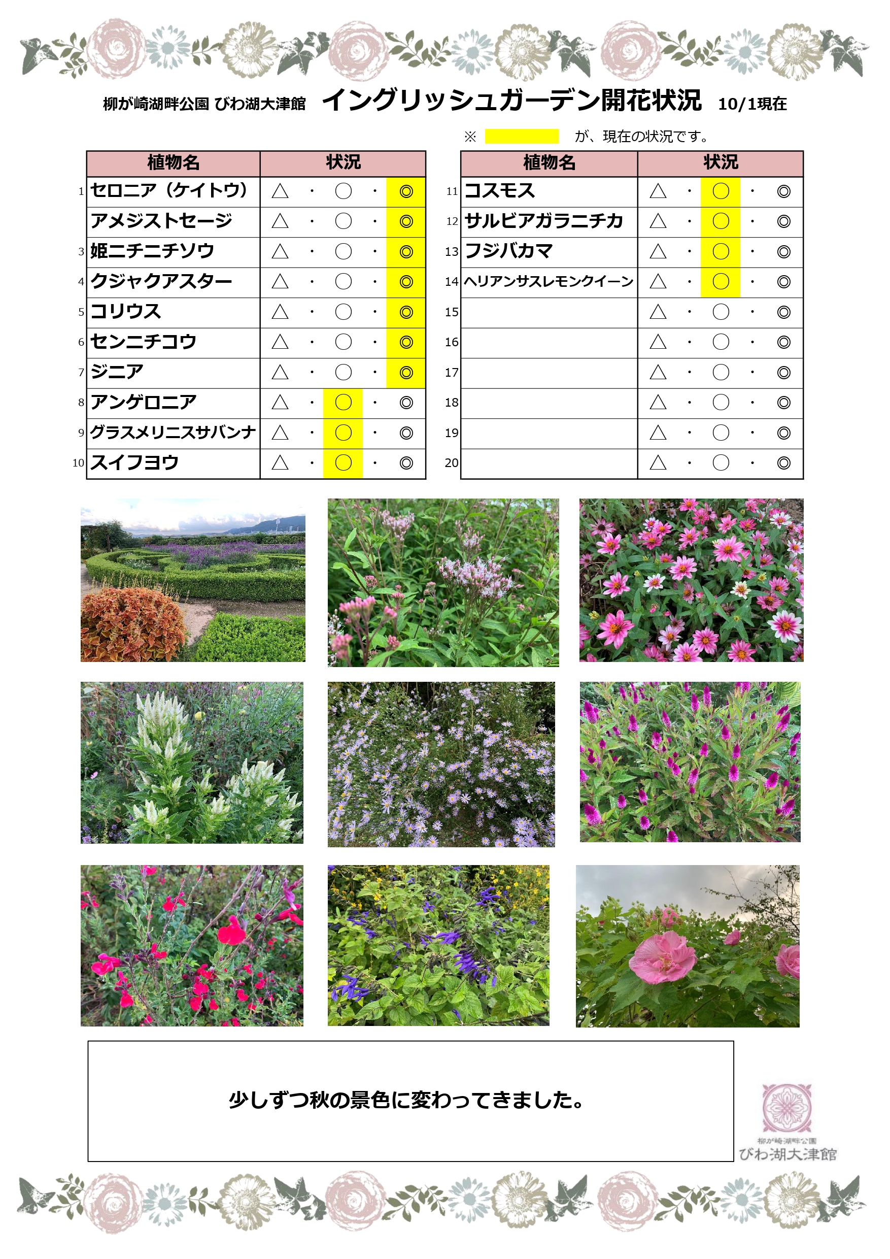 2025.10.01 | 【開花状況】イングリッシュガーデン開花状況(10/1現在) |