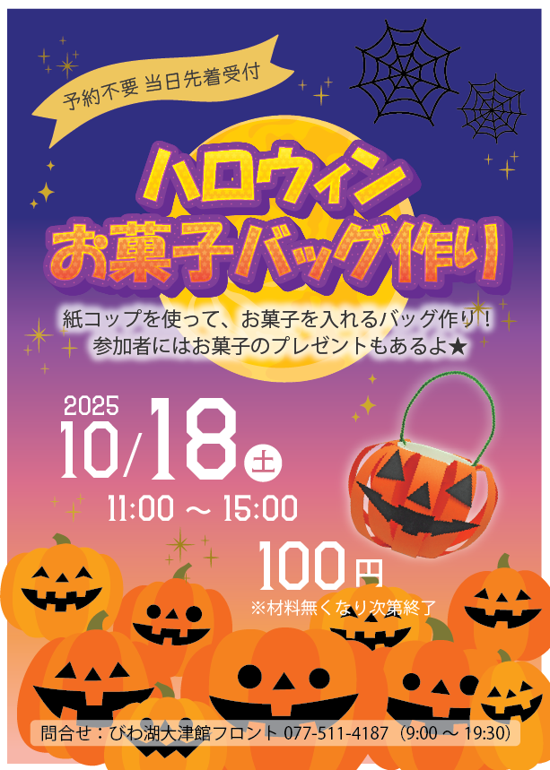 10/18(土)「ハロウィンお菓子バッグ作り」